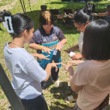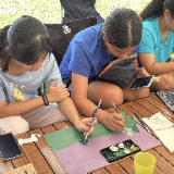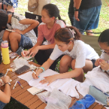 The young women began camp activities by designing their own camp T-shirts, which were then passed around for everyone to sign. Sister Julie Haltinner, a senior Church volunteer, taught the young women how to braid a pretty bracelet which included a sun medallion to represent and remember the Savior. Puchong YW President Benjarin Kaivalvatana taught the young women the value of service to others as they painted colorful camp signs that were then given as a gift to the camp operator.